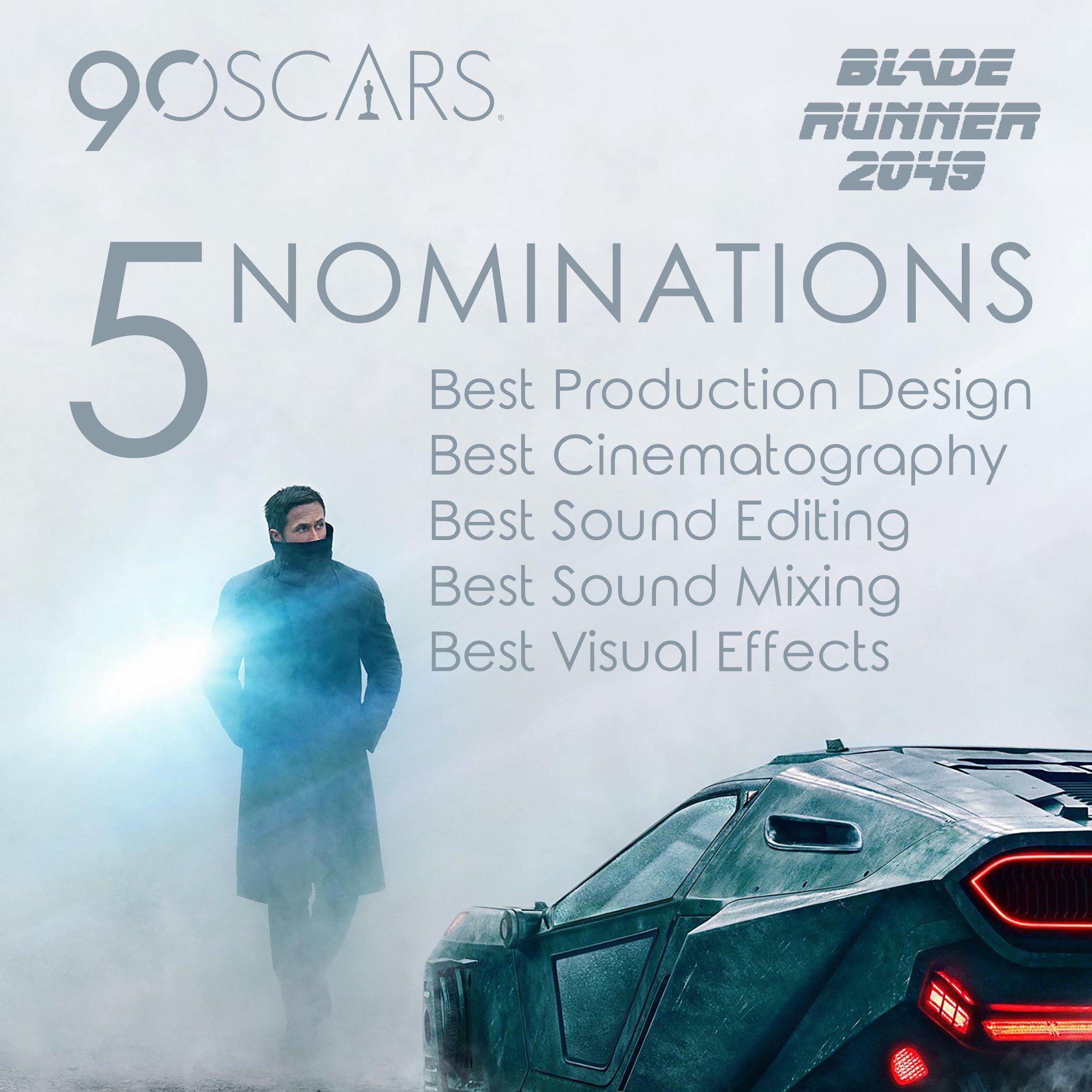 На этой неделе были объявлены номинанты на премию «Оскар-2018». Фильм Дени Вильнёва «Бегущий по лезвию 2049» (Blade Runner 2049) был номинирован сразу в 5 категориях: