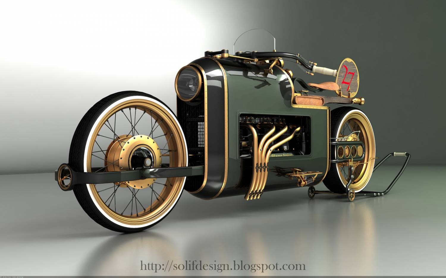 Российский дизайнер из Москвы Михаил Смолянов, изначально хотел сделать мотоцикл в стиле 20-х годов прошлого века. Но вместо этого он предпочел стимпанк стиль, сочетающий эпохи парового двигателя 19-го века с элементами научной фантастики и фэнтези.